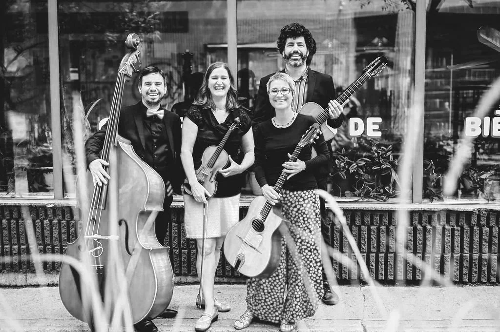 Anything but imposters, the band is comprised of Martine Gaumond on violin, Francis Tétu on rhythm guitar, and Mathieu Gagné on bass, all accomplished and in-demand Montreal jazz musicians, who all also contribute with vocals and arrangements.